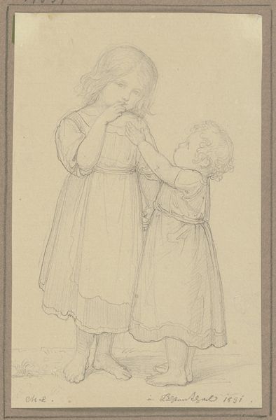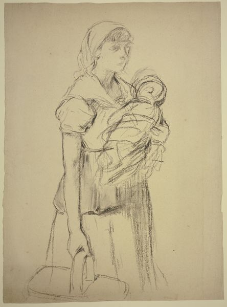This is Lorenz Frølich's 1857 pencil drawing, "54. Flensborg," now at the SMK. The drawing presents us with an intimate, affecting scene. A mother cradles her child, their figures softly rendered, as if emerging from the very fabric of the paper. Consider how Frølich uses line and shading to evoke texture and emotion. The delicate lines of the mother’s face, and the subtle shadows that define the child’s form, create a sense of tenderness. The composition, with its emphasis on the central, interconnected figures, reinforces this intimacy. The drawing invites us to reflect on the universal theme of motherhood, but also to consider the social and cultural values of 19th-century Denmark. It’s a poignant statement about human connection, depicted through careful manipulation of form.