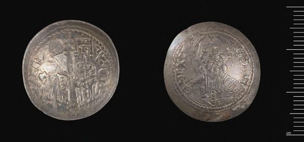 Curator: This is the Ducat of Roger II of Sicily. It's fascinating how a coin, so small, can carry such weight, isn’t it? Like a tiny mirror reflecting an entire kingdom. Editor: Absolutely. My first thought is how power is literally impressed upon this object. The weight, the metallic gleam, everything screams authority, even now. What can you tell me about its iconography? Curator: Well, on one side, you see Roger II being crowned by Christ, which is a bold statement of divine right, wouldn't you agree? The other side shows a cross. I think it suggests Roger’s shrewdness, mixing sacred and secular authority. Editor: Indeed. Consider the historical context: Sicily was a cultural crossroads. This coin speaks to the complex negotiation of power between the Norman rulers and the diverse populations under their control. Curator: It also speaks to the durability of art, doesn't it? The coin is a testament to that. It survives, whispering secrets from a long-lost kingdom. Editor: Yes, it allows us to ask: who was included, who was excluded, and what narratives were intentionally inscribed and erased. It really highlights the power dynamics at play. Curator: It’s remarkable to think that such a small object has held so much, and continues to provoke so many questions. Editor: A potent reminder that even the smallest things can be tools to question the status quo.