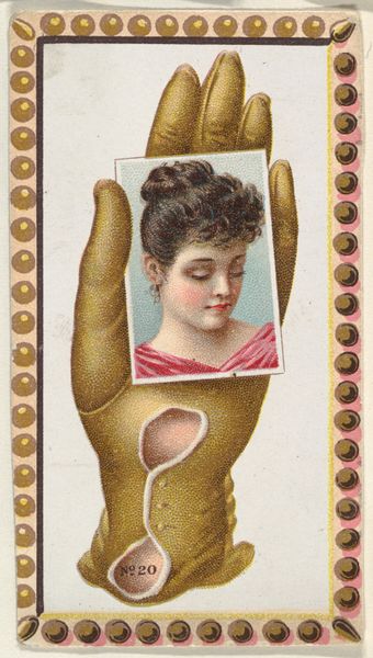 This is Card Number 2, a promotional cut-out for Allen & Ginter Cigarettes. It provides a glimpse into the complex intersections of commerce, gender, and representation in the late 19th century. Here, a gloved hand delicately presents a portrait of a young woman. The gloves themselves become a signifier of class and femininity, hinting at the rituals of beauty and social performance expected of women during this era. The series of trade cards like this one, placed within cigarette packs, was designed to entice consumers and construct a particular vision of feminine beauty. These images not only reflected societal ideals, but also perpetuated them. Looking closely, consider the gaze of the young woman. The downcast eyes and modest demeanor were part of a visual language that reinforced women's roles as objects of beauty. The artist rarely gave them alternative narratives of self-expression. This piece serves as a reminder of the subtle ways that consumer culture can shape our perceptions and expectations of gender.