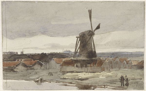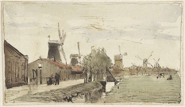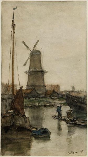Jacob Maris created this watercolor, "Mill and the bridge at the Noord-West-Buitensingel in The Hague," in 1877. Maris, a leading figure of the Hague School, captured the somber and tranquil atmosphere of the Dutch landscape, particularly reflecting the urbanization and industrial changes of the late 19th century. This scene of a windmill near The Hague transcends mere landscape; it embodies the Dutch identity—a blend of tradition confronting modernization. The muted palette evokes the psychological mood of the era, marked by industrial expansion and its consequences on the environment and society. The windmill, a historical symbol, is juxtaposed with the emerging urban landscape. Maris masterfully conveys a sense of place infused with melancholy, reflecting on themes of cultural change and continuity. Here, the personal merges with the historical, allowing us to meditate on progress, loss, and resilience.