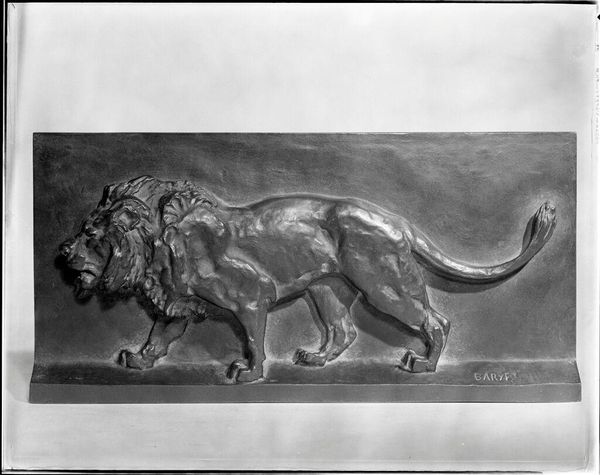 Editor: This bronze sculpture, "Reclining Panther" by Antoine Louis Barye, has such a contained energy. It feels like a symbol, but of what? What do you see in this piece? Curator: The panther, historically, represents both fierce power and watchful patience. Barye's choice of bronze—a material linked to antiquity—lends it a timeless quality. The reclining pose, however, introduces a duality. Editor: A duality? Curator: Yes, a tension between potent energy and languid repose. The panther is not actively hunting, but the potential for action is ever-present. How does that tension affect you? Editor: It makes me think about control. The panther chooses when to act, a potent reminder of internal strength. Curator: Precisely! Barye captures not just the animal’s physicality, but its psychological depth. The image resonates even today. Editor: I hadn’t considered the psychological aspect. That really changes how I see it.