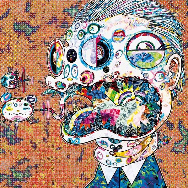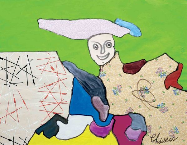 Kayla Mahaffey made this painting, "On The Hook," sometime in the 20th century, and just look at her way of walking the line between the real and surreal. It's a total process! Mahaffey's got this wild mix of textures and colors all fighting for attention. The kid's face is so real, you almost feel his pain, but then you've got this starfish on his head and a hook in his mouth, plus these cartoony shapes floating all around. The paint is thick and juicy in some spots and then thin and transparent in others. It's like she's not afraid to let us see how she made it. I especially love the way she painted those tears, all shiny and round, but still so sad. And how the whole thing is kind of chaotic and unsettling, like life, right? It makes me think of Christina Quarles who is great at mixing up realism and abstraction to get at something deeper. Art's a conversation, always borrowing and riffing.