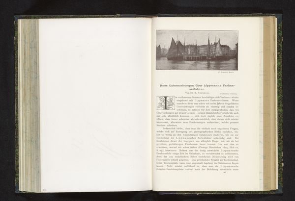 Editor: So, here we have a gelatin silver print from before 1894, titled "Schreierstoren te Amsterdam", by Charles L. Mitchell. It’s presented within the pages of a book. I'm immediately drawn to its serene quality. It's a quiet cityscape. What do you see in this photograph, beyond just a pretty picture of old Amsterdam? Curator: Oh, it’s so much more than just ‘pretty,’ isn’t it? It whispers secrets of journeys, doesn't it? Imagine being in the darkroom when it was developed. Mitchell probably held his breath, hoping to capture the feel of the city… It's about the yearning for far-off lands, the dreams – and tears, literally – that sailed away from that very tower. Editor: The "Tower of Tears," right? So, it's a sentimental place then? Curator: Exactly! It's thought sailors bid farewell to loved ones from there before long voyages. Can you almost feel that palpable emotion? Also, note how Mitchell positions the tower within the watery environment - he gives it weight with those reflections. It almost looks as though it’s part of the river. Clever stuff! Does the photographic medium play any role for you? Editor: Now that you mention it, the tonal range in this gelatin silver print does give a very timeless feeling, which I guess emphasizes the historical weight. It does carry those emotions quite powerfully. Curator: Precisely. It's a portal to the past. And now, armed with our little insights, the tower maybe holds just a tiny bit less of its secrets... Or perhaps a little bit more! What do you think? Editor: I definitely see it in a new light, a deeper appreciation for its context makes a difference for me! Thank you!