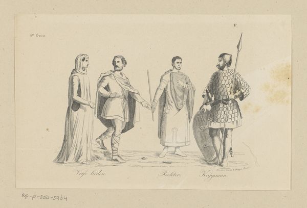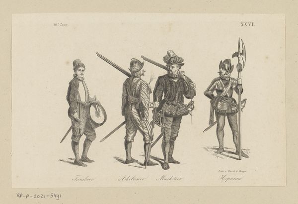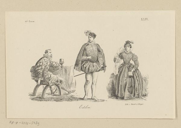 This print of an etching depicts an nobleman, a citizen and an archer in sixteenth-century clothing, and was made by an anonymous artist. While the costumes are based on clothing of the 1500s, the print was likely made much later. Collections of prints of costumes like this one often served as guides or models for theatrical productions, historical reenactments, or civic pageants. Notice how each figure is carefully labeled with his social status and how the clothing reflects his position in society. To better understand this print, you might consult costume history books from the period, museum collections of textiles, or even play scripts and production designs for historical dramas to see how images like this were put to use in later eras. Understanding the social function of art is as important as understanding its formal qualities.