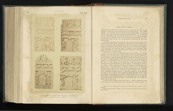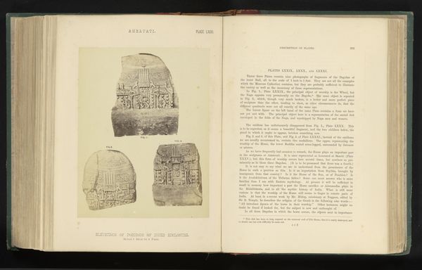 Editor: Here we have “Drie reliëfs met religieuze voorstelling," or Three Reliefs with Religious Presentation, dated before 1868. It appears to be a print in a book of what I'm guessing are ancient Islamic sculptures or reliefs. They look very worn and it’s hard to make out details… what's your take? Curator: This image from a printed volume provides a crucial glimpse into the 19th-century's engagement with non-Western religious art. The photograph mediates these "ancient" forms. Think about how the mass reproduction and distribution of such images shaped and codified Western understanding and, in a sense, "ownership" of Islamic visual culture. Does the act of photography and its inclusion in a book change the art object, in your view? Editor: That's a great point, framing changes everything! Photography brings context with it and maybe authority too? The book says "look, study, learn," and here it's religious objects. Curator: Precisely! Consider how the creation and circulation of images, like these reliefs in a printed volume, reflect not just an interest in "religious presentation", but the very specific institutional agendas and imperial politics of the time. Notice the almost taxonomic approach to organizing and displaying these images...it implies a certain kind of power dynamic. Editor: Now I'm seeing this more as a cultural artifact in itself! Thanks for pointing out how the presentation says a lot about who made this image, when and where. It is more than just stone reliefs now. Curator: Exactly, by analyzing the image within its historical context, we gain a deeper understanding of how art is perceived and used within a specific culture and time. Editor: This has totally changed the way I look at reproductions!