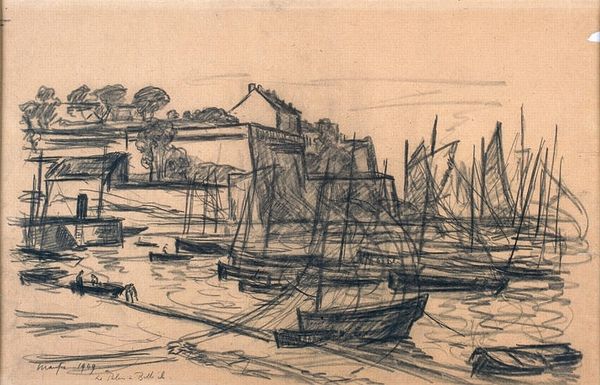 Curator: Whistler's "Millbank" presents a fascinating study in social fabric and labor. The figures, the industrial backdrop—it’s all suggestive of a specific moment. Editor: The composition itself is striking. The contrast between the delicate lines of the water and the bold strokes defining the figures creates a captivating tension. Curator: Absolutely. Notice how the artist uses etching to portray industry and labor near the Thames. The printing process itself mirrors the industrial processes depicted. Editor: The use of line is just gorgeous. Look at how it evokes a mood, a sense of melancholy or quiet observation, don’t you think? Curator: It's a view of burgeoning industrialism, and the ordinary people within that reality. Editor: It’s the way the artist used visual language and the power of suggestion to evoke emotion that I find so captivating. Curator: And it reflects the lived experiences of the working class in a rapidly changing urban landscape, brought to us by a process that echoes the labor it depicts. Editor: Ultimately, it's the interplay of these elements that make this piece resonate.