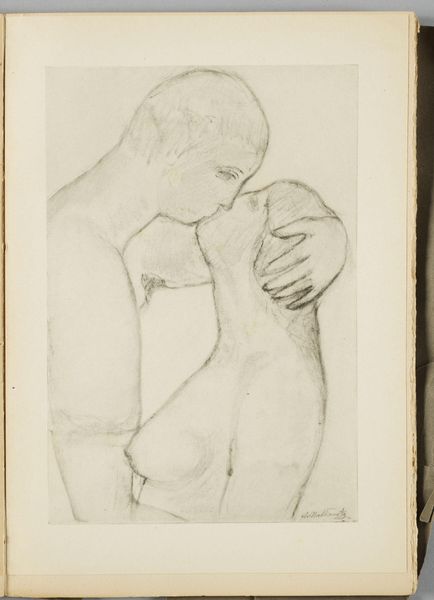 Egon Schiele drew this work, titled "The Kiss," using graphite on paper. The sketch emphasizes a direct, unmediated record of the artist's hand. Graphite, a humble material, allows for both precision and expressive freedom, visible in the delicate rendering of the figures, which conveys a sense of intimacy and vulnerability. The choice of graphite, rather than richer media, gives the work an immediacy, as if capturing a fleeting moment. Schiele's rapid, economical lines, reveal an engagement with the modernist concept of "truth to materials." The rawness of the medium becomes integral to the image's impact, challenging traditional notions of artistic refinement. In the context of early 20th-century Vienna, graphite's accessibility democratized art-making, blurring the lines between high art and the everyday. The work reflects an era of shifting social values, as well as the desire to record an intimate moment in a raw and honest way. By considering the materials and methods, we move beyond the subject matter to recognize the work as a testament to the artist's engagement with the materiality of art itself.