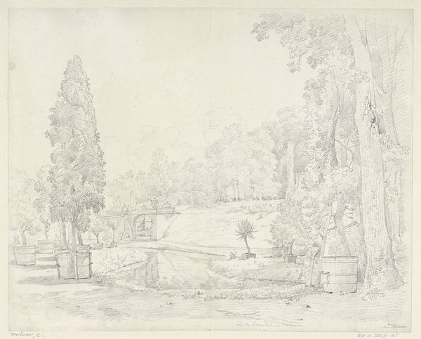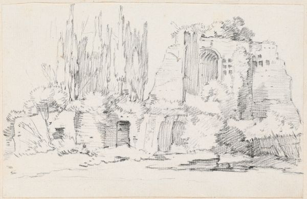Adolf Hoeffler created this pencil drawing of Tivoli, a landscape near Rome. The sketch brings to mind the historical and cultural context of the Grand Tour, a tradition since the 17th century. The Grand Tour was a rite of passage for wealthy Europeans, particularly young men, who traveled through the continent, with Italy as a highlight. Hoeffler, born in the mid-1820s, would have grown up in a society where travel and exploration were romanticized. The drawing represents the artist's own experience of place, but also speaks to broader themes of class, privilege, and the gaze of the colonizer. We see this in the depiction of the lone figure on horseback, a symbol of dominance moving through the landscape. This artwork invites us to consider the power dynamics inherent in travel and representation, while pondering the legacy of the Grand Tour and its impact on shaping cultural perceptions of foreign lands.