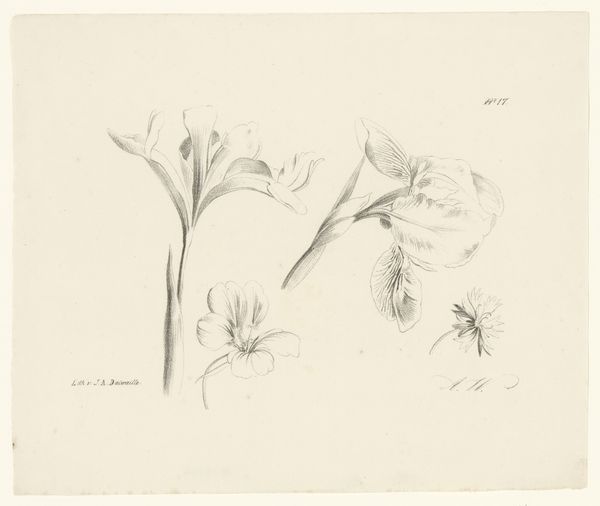 Anton Weiss created this drawing, "Diverse Bloemen," using graphite on paper in the Netherlands sometime in the first half of the 19th century. It represents a bouquet of assorted flowers, rendered with careful attention to detail. During this period, botanical illustration flourished, fueled by scientific exploration and a growing interest in the natural world. Botanical drawings often served as scientific records, but they also reflect broader cultural values. The detailed rendering and careful composition are very much in line with the period's emphasis on empirical observation and classification. The art market and institutions like botanical gardens and museums further shaped the production and reception of such artworks. Investigating Weiss’s training and the patronage system of his time can help us better understand the social conditions that shaped his artistic output. By looking into the social and institutional contexts, we can start to understand how an image like this might have circulated, what kind of audience it was made for, and how its meanings might have been interpreted at the time.