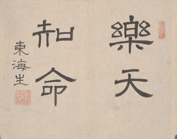 Little is known about Kawamura, a woman calligrapher who was active in the early twentieth century. Born in modern-day Shizuoka prefecture to the west of Tokyo, she was born into a scholarly family who focused on Chinese literature.Kawamura excerpted this enigmatic statement from a poem by the Chinese poet Du Fu: “I come close up to recognize the elder in Emei Mountain, he knows my principle that laziness is truth.” In the original poem, Du Fu expresses his lack of interest in pursuing secular wealth and power. Kawamura displays her knowledge of Chinese poetry andcalligraphy in these three characters, written in clerical script.懶是真Laziness is Truth