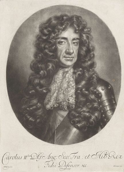 Curator: There’s an almost haunting quality to this print, a delicate sense of detail amidst what seems like a shadowy presence. Editor: I agree. "Portrait of Anthony Ashley Cooper" rendered in engraving from the 1760s, by Jean-Charles François. It is a striking study in light and shadow, wouldn’t you say? Curator: Indeed. It's intriguing how the light seems to cling to his face and the intricate curls of his wig. This recalls how portraits served as conveyors of status, but what emotional narratives were embedded within these prints for the public? Editor: That’s right! It speaks to the period’s understanding of representation. Printed portraits made people and ideals circulate beyond the elite. Think about the very act of creating multiple copies; it's about accessibility and broadcasting power. Curator: The artist’s choices are fascinating. It’s almost as if Ashley Cooper’s identity becomes symbolic—his attire a badge and uniform representing his belonging to English aristocracy, his figure enmeshed in a baroque ideal. Editor: And this particular choice of medium–engraving–allowed for a controlled distribution, creating something between a cultural commodity and a propaganda piece. How else was this visual medium manipulated for cultural memory? Curator: Note how his intense gaze almost feels staged or deliberate. As an Iconographer, I sense there’s a visual strategy at play–something intended to both impress and maybe even subtly intimidate the viewer. Editor: So in a way, by circulating these portraits, they’re attempting to create an air of legitimacy and control in society through manipulating and negotiating his image through popular consumption. Curator: Exactly. It serves as a window into how visual imagery could shape not only perception but collective cultural memory and power structures of the time. Editor: Food for thought, indeed. I appreciate seeing how the visual arts played an active role in socio-political history through this engraving.