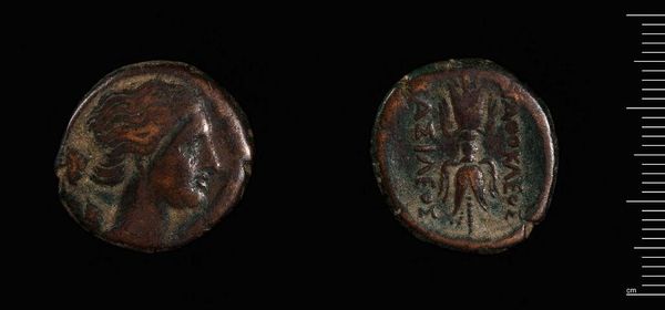 Editor: This is a coin minted by Agathokles of Syracuse. It's incredible to think that something so small could have had such a large impact on history! What can you tell me about its significance? Curator: It's a powerful symbol, isn't it? This coin wasn’t just currency; it was propaganda. Agathokles, a self-proclaimed tyrant, used these images to legitimize his rule and project power. What do you notice about the imagery? Editor: One side shows a figure's head, maybe a ruler, and the other has a chariot. Curator: Exactly! The portrait likely represents Agathokles himself, linking him to divine authority. The chariot? A symbol of military might and victory. Coins like these are fascinating because they show how rulers used art to shape public perception and maintain their grip on power. Editor: So, it's less about the economic value, and more about the political statement? Curator: Precisely! It reveals the complex relationship between art, power, and the public in ancient Syracuse. Editor: I never thought of coins as political art before. Thanks!
