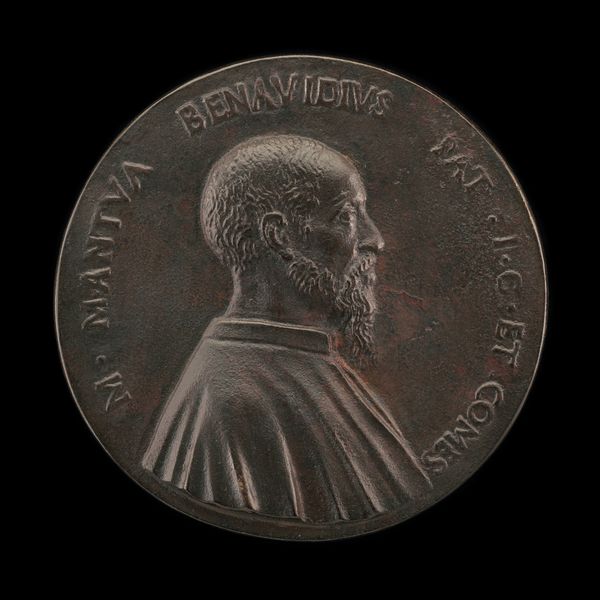 Editor: So this is a bronze medal, dating from around 1573, depicting Mateo Vásquez. He was King Phillip II’s secretary. The bronze has such a deep color, and the relief really makes the figure stand out. It feels very stately, very official. What can you tell me about this type of portraiture? Curator: It’s interesting to consider this medal not just as a likeness, but as a political object. Portrait medals, especially in the Renaissance, were tools for disseminating images of power and authority. Consider how this medal, in circulating, might shape public perception of both Vásquez and by extension, the Spanish court. Editor: So, it's a way of controlling the narrative, a bit like official portraits of presidents today? Curator: Precisely. And think about the choice of bronze, a material often associated with permanence and classical antiquity. How does that material contribute to the intended message of the piece, particularly regarding lasting legacy? Editor: I guess using bronze would emphasize the subject's importance and position in history, linking him to a legacy of power through both the material and the style. What strikes me is that there's no artist credited... Was that typical? Curator: Yes, often the patron or the subject held more significance than the artist, particularly in medals which were more functional than high art. The creation was part of a broader political project. These objects teach us so much about the power structures of the era. Editor: I never thought about a medal having that much political weight, more than just showing someone's face! It adds a whole other level of meaning. Curator: Indeed! Examining art through a historical lens reveals the profound connections between aesthetics and the socio-political forces at play.