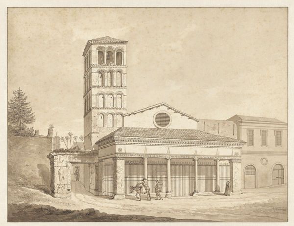 Daniël Dupré made this drawing of the Aventine Hill in Rome using pen in gray ink and brush in gray and brown ink. It gives us an insight into the cultural fascination with classical architecture in the 18th century. The church of S. Saba, Abbate, offers a glimpse into Rome's religious and architectural landscape. The Aventine Hill, one of Rome’s seven hills, has ancient origins, but the eighteenth-century viewer sought in it the historical layers and the picturesque qualities that attracted artists and intellectuals alike. In representing this location, Dupré participates in a visual culture that romanticized ancient history. He invites viewers to contemplate the passage of time and the endurance of cultural heritage. To truly understand Dupré's drawing, we need to explore the artistic conventions of his time, delving into travelogues, architectural treatises, and the social networks of artists and patrons. The meaning of art is always contingent on its social and institutional context.