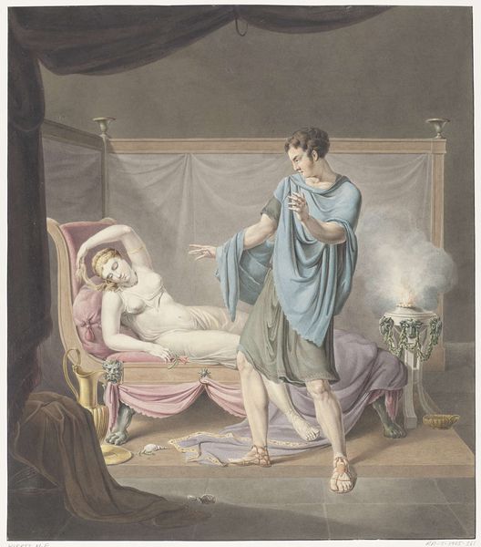 Herman van der Mijn rendered this watercolor of Thamar en Amnon sometime in the 18th century. It illustrates a biblical narrative, casting light on patriarchal power and female vulnerability. In this fraught scene, we witness the moment Amnon overpowers his half-sister, Thamar. Van der Mijn captures the brutal encounter with a dramatic flair, typical of the period. The setting— a lavishly decorated chamber — serves as a stark contrast to the violence unfolding. Thamar’s struggle is palpable; her body is twisted, her expression a mix of fear and desperation, whereas Amnon is determined, his grip firm, embodying male dominance. It is difficult to view this image outside the histories of sexual violence against women. Van der Mijn presents a moment of raw emotional intensity while holding the viewer accountable.