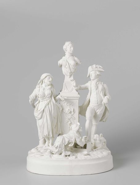 Editor: This little porcelain sculpture, created sometime between 1755 and 1780, is titled "Figure of a fruit picking woman," and just seems so delicate. What strikes me is how posed and performative this woman’s ‘labor’ appears to be. What’s your interpretation? Curator: That’s a great observation. When considering this piece historically, it's key to understand the Rococo period's fascination with pastoral themes. How do you think this romanticized view of rural life relates to the socio-political context of the time? Editor: I suppose it's kind of an escapist fantasy for the wealthy elite, maybe even a way to distance themselves from the realities of peasant life? Curator: Exactly! These porcelain figures, often displayed in the homes of the aristocracy, served as a kind of curated performance of an idealized world. What does it mean for art to participate in constructing those hierarchies and shielding those elites from uncomfortable realities? How does that compare with artistic practice today? Editor: Wow, I hadn't thought about it that way. The sculpture is beautiful, but its purpose seems to reinforce class divisions rather than bridge them. Does the whiteness of the porcelain tie into those politics? Curator: Yes, the pristine white porcelain was itself a symbol of wealth and status, attainable only by the upper classes, in direct opposition to the working class. And the small scale is critical, since these works existed in private space. It highlights the private consumption of art during the period. It's a visual reminder of who controls not just resources, but also narratives and representation. Editor: I see it now: this tiny, beautiful object tells a bigger story about power, class, and the ways art can both reflect and shape social perceptions. It gives me a new perspective on seemingly simple artworks. Curator: Absolutely! And remembering to examine those socio-political undercurrents will only make your readings of artworks richer moving forward.