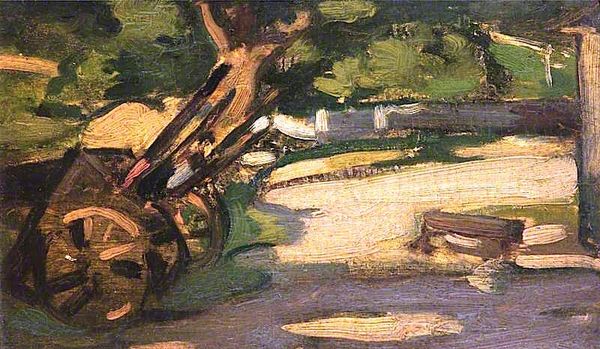 Henryk Siemiradzki painted this landscape of Svislach using oil on canvas. The idyllic scene is structured around a central tree, whose form both divides and connects the composition. Note how the rough texture and earthy tones anchor the foreground, giving way to a soft focus on the open fields. The landscape's structural arrangement reveals a careful balance between naturalism and artifice. The subdued palette, dominated by greens and blues, creates a tranquil atmosphere, but this harmony is challenged by the stark juxtaposition of the detailed foreground with the hazy background. The painting appears to negotiate the relationship between the real and the ideal. This negotiation is a reflection of the artist's world view. Is Siemiradzki inviting us to consider the ways in which art can both represent and transform our understanding of the natural world? The painting invites multiple interpretations, each shaped by the observer's own experiences and perspectives.