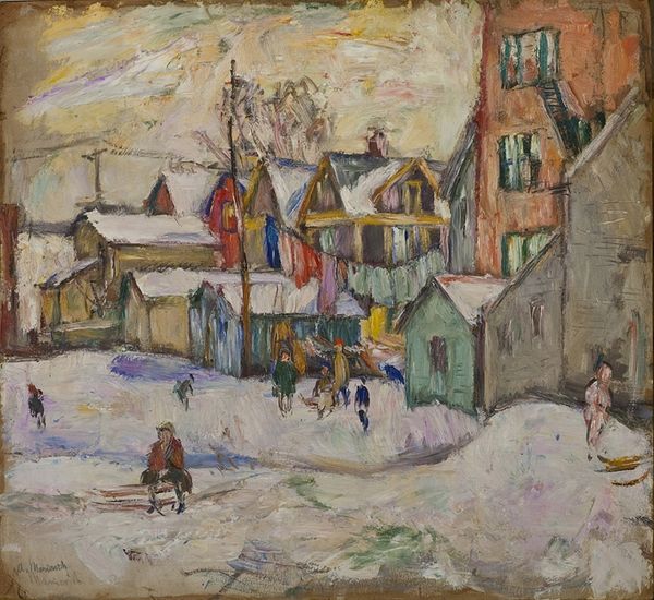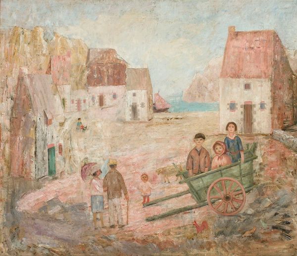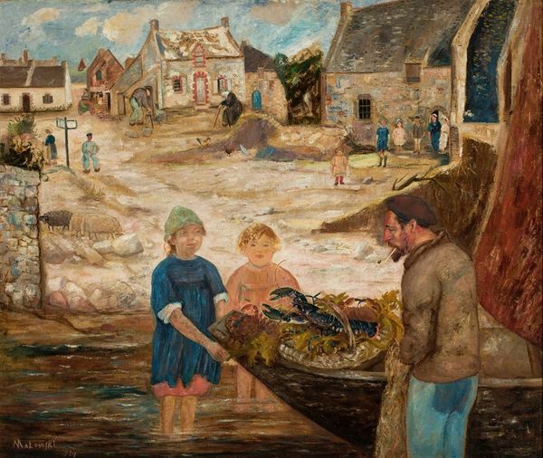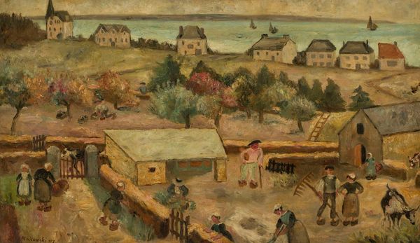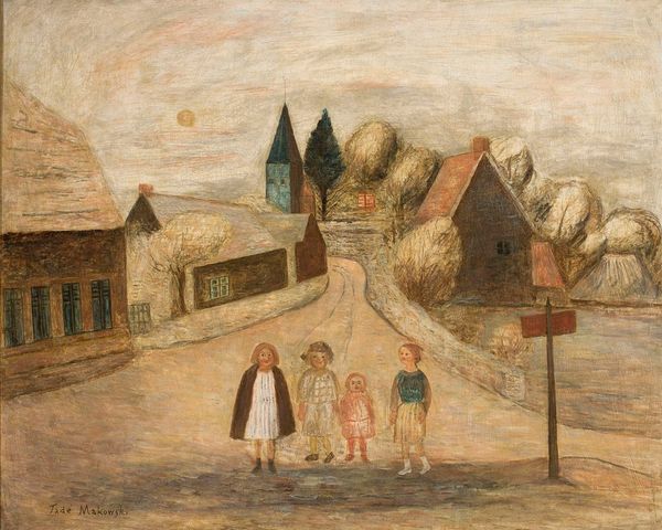 Tadeusz Makowski made this painting, Wedding in a Village, using oils, and I am struck by the earthy palette, a kind of humble brownness that pervades the scene, giving it a sense of timelessness and rustic charm. The paint handling is wonderfully thick and textured, each stroke visible, almost like little daubs of clay molded onto the canvas. Look at the dancing figures in the lower left. The artist's brushstrokes give the figures a sense of movement and energy. It’s like he’s not just depicting a scene, but also the feeling of a celebration, the joy and communal spirit of a village wedding. The way he builds up the paint, layer upon layer, creates a palpable sense of depth and dimension, pulling you into the scene. Makowski’s work shares something with artists like Pieter Bruegel the Elder, who also captured the everyday lives of peasants with such detail and empathy. Both artists remind us that art is an ongoing conversation, where ideas and techniques are passed down and transformed across time, embracing the beauty of ambiguity.