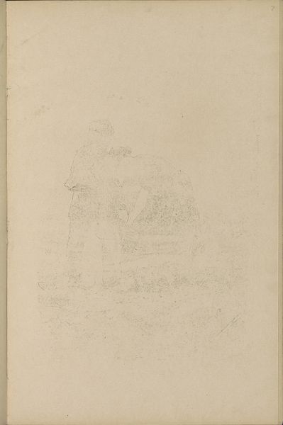 Editor: This is "Girl with Basket, Seen From the Back" created by Otto Scholderer in 1871. It’s a pencil drawing on paper currently at the Städel Museum. I find its delicacy quite striking. What do you see in this piece? Curator: The delicate lines immediately draw my eye to the theme of childhood innocence, doesn’t it? The girl's averted gaze encourages the viewer to contemplate themes of isolation and internal thought. Consider the basket. What might it symbolize, given the time and cultural context? Editor: Perhaps it represents labor, even in childhood? Or a connection to nature, maybe? Curator: Precisely. Baskets throughout history are linked to nourishment, provision, even offering. Does the positioning of the girl, her back turned, evoke any particular emotion or symbolic resonance? Editor: A sense of anonymity? Like she could be anyone, or any young girl burdened by the demands of her time? It feels like a very human moment, yet also distant. Curator: Anonymity can also transform into universality. This distance might make the image more enduring, allowing viewers across time to see their own reflections or ancestors. The slightly aged paper strengthens the tie to history, yes? Editor: Definitely! I see now how the artist uses simple forms to create something that evokes much more. I had not considered the symbolism behind everyday objects so deeply before. Curator: And the beauty, isn't it, resides in this connection. These silent witnesses like baskets, and simple poses carry collective experiences across centuries. These become potent symbols indeed.