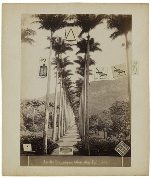 This is Sacred Ibis, a chromolithograph trading card from the Birds of the Tropics series, by Allen & Ginter. The composition strikes you immediately, split into three distinct panels each framed with a decorative pink border. The central panel dominates, featuring a large Ibis set against a backdrop of ancient Egyptian architecture. Notice how the bird's stark black and white plumage creates a striking contrast, drawing the eye. To either side, flanking landscapes offer exotic glimpses of buildings and palm trees, transporting the viewer to distant lands. The overall design reveals an interest in capturing the exoticism of tropical locales for commercial appeal. The structure of the card, with its clear divisions and careful balance of text and image, speaks to the late 19th-century fascination with categorizing and presenting the world in an easily digestible format, not unlike a visual encyclopedia entry. The Ibis itself becomes a signifier, embodying the allure and mystery of faraway lands. The formal qualities of this chromolithograph serve not only to present information but also to construct a particular vision of the world, one framed by the desires and cultural values of its time.