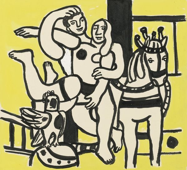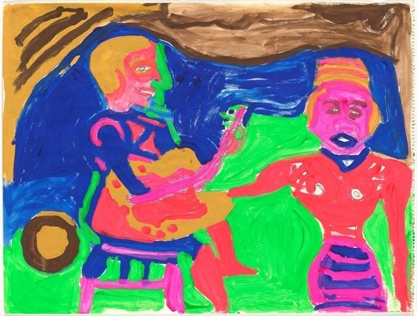 Alexander Calder made this playful gouache on paper, called "Black Chair," sometime in the 1960s. Calder, of course, is best known for his invention of the mobile; delicate arrangements of wire and painted metal that hung in the air, dancing with the slightest breeze. Here, we see two nudes, male and female, rendered in a style reminiscent of Matisse’s line drawings, as well as an ominous snake slithering along the ground. Calder seems to turn the art historical trope of the nude on its head. Rather than idealized figures, these are quirky, imperfect bodies, presented with a refreshing lack of reverence. The black chair, stark against a saturated blue, adds an element of domesticity to the scene, perhaps suggesting a critique of traditional gender roles within the home. "Black Chair" challenges us to reconsider how we view the body and its place within the social landscape. It's a whimsical yet thought-provoking piece, inviting us to question the norms that shape our perceptions.