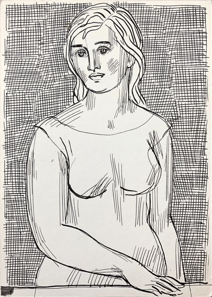 This is Hryhorii Havrylenko's "Woman in Nature," a drawing from an unknown date, currently held in a private collection. Immediately striking is the rigorous use of hatching, which creates a textural density across the figure and the landscape. The consistent diagonal lines, rendered in ink, unify the woman and her environment, blurring the boundary between figure and ground. The woman's geometric features and simplified form, combined with the abstract rendering of nature, challenge traditional portraiture. It appears to engage with structuralist ideas, suggesting that meaning is derived from the underlying structures that constitute reality. The semiotic reading indicates a potential disruption of conventional representations, prompting an active interpretation of reality. Havrylenko destabilizes the subject, and the natural world becomes a field of visual and conceptual play. The drawing's formal qualities invite us to see beyond the surface, engaging with the structural elements that constitute its meaning and broader cultural implications.