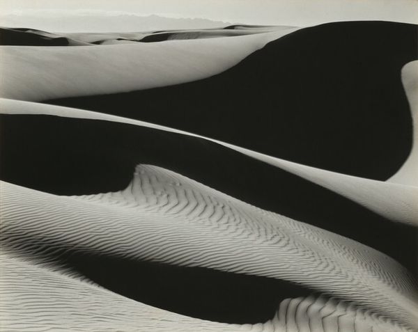 This is Edward Weston’s photograph of the Dunes at Oceano. He made it with his camera, sometime between the wars. Look how he plays with light and shadow. What gets me about this photo is how Weston turns sand into something almost painterly. It's like he's sculpting with light, revealing the tactile qualities of the dunes. The texture, those rhythmic lines carved by the wind, make you want to reach out and touch it. See that one dune in the foreground? The way the light rakes across it, creating these deep, almost sculptural furrows, it reminds me of Gerhard Richter’s paintings, where he drags paint across the canvas to create these mesmerizing surfaces. Weston's work, like Richter’s, isn't just about what you see, but how you see it. It’s about the process, the act of looking, and the endless possibilities of interpretation.