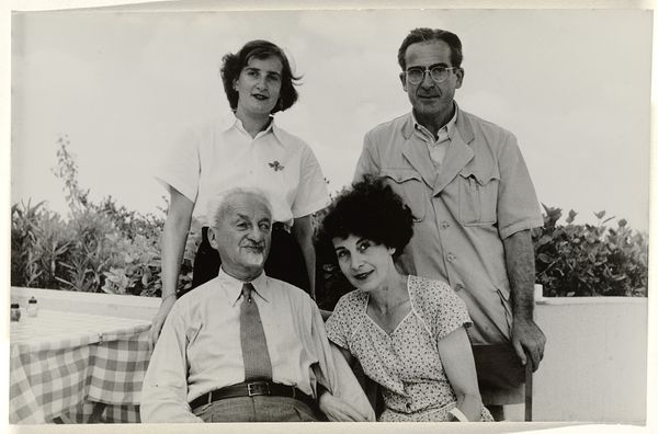 This is a vintage photograph titled 'Mannen en vrouwen in een deuropening met een fotocamera' by G. Hidderley. It captures two men and two women in what appears to be a casual gathering. There’s a complex interplay of gender and class dynamics at play here. The men seem to be at the center of the action, with one holding and demonstrating the camera. The women appear more reserved, their attention directed towards the camera, but their roles are less defined within the photograph's narrative. The clothing indicates a certain social standing, yet there’s an ambiguity in their expressions, a sense of either curiosity or perhaps constraint. This photograph, while seemingly simple, gives us a peek into the social interactions and power dynamics of its time, highlighting the subtleties of everyday life.