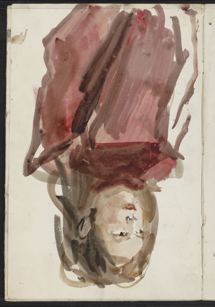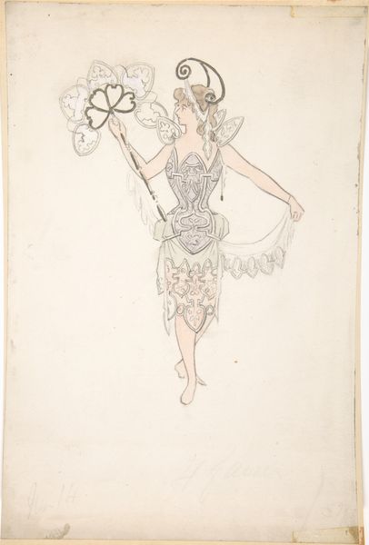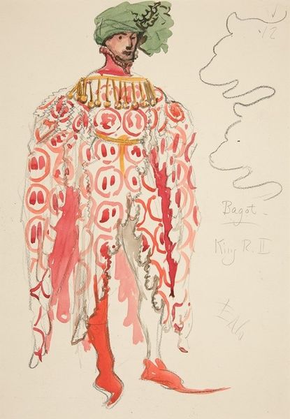 Curator: Looking at Rosalia Lane's "Bonnet," made around 1937, the delicate rendering immediately strikes me. The composition centers this ornate head covering, depicted through subtle washes of watercolor and restrained colored pencil work. What are your first impressions? Editor: It projects such a clear sense of historical femininity and the performance thereof. The pink bow dangling from beneath the burgundy bonnet speaks to a carefully constructed identity – what norms is this artifice meant to uphold? Curator: Observe the fine detailing - the floral lacework against the bonnet's darker tones creates an interplay of texture and shadow. Lane employs these elements with considerable finesse, focusing attention on form and the arrangement of its parts. Editor: And consider the larger implications of fashion itself. Who had access to such adornments? The labor, often exploited, behind these kinds of textiles? It’s impossible to divorce this object from the socio-economic realities of its time. It hints at social stratifications, access to resources, the objectification of women... Curator: While acknowledging the broader contexts, I urge a focus on Lane’s visual language itself. Notice how the schematic studies to the right refine the very idea of the bonnet. It is the distillation of its purest form and how the eye apprehends such an intricate design. Editor: Agreed. However, this is not just about seeing a hat, it is about what that hat signifies within a precise cultural moment – the expectations, the constraints, and perhaps even the rebellions played out through these visual cues. Curator: Lane’s "Bonnet" ultimately encourages us to look closely at her technique: the way in which she translates this object through line, color, and the overall construction of the drawing. Editor: Precisely. Let’s ensure that viewers walk away conscious that fashion isn’t simply superficial; it’s interwoven with history, identity, and the quiet politics of everyday life.