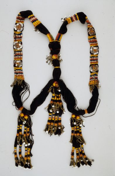 Editor: This woven belt, dating from the early 20th century, by an anonymous maker, really caught my eye. It has these beautiful geometric patterns and playful tassels. What do you see in this piece? Curator: Well, considering the belt’s presence within a museum context, it becomes crucial to understand its journey and the narratives we construct around Indigenous craftsmanship. How does displaying this utilitarian object as art affect our understanding of both? Editor: That’s a great question! It seems to elevate it, but maybe at the cost of erasing its original purpose? Curator: Precisely. This tension highlights how museums often shape and sometimes distort cultural understanding. This piece is a clear example of “pattern and decoration” meeting Indigenous art. To consider the social dynamic, where was this displayed when it was produced compared to where is it displayed today? Editor: Good point, and knowing the maker is anonymous complicates it even more, doesn’t it? Whose story are we telling? Curator: Indeed. Anonymity pushes us to analyze the politics of imagery itself, irrespective of the artist's biography. How might this piece challenge conventional art historical narratives that center individual genius? Editor: So, this belt, seemingly simple, opens up this whole conversation about art institutions and cultural representation. It gives the design and history behind an everyday object importance beyond just utility. Curator: Precisely. Seeing beyond aesthetic value allows us to consider its broader cultural impact. It's more than just something that holds up your pants!