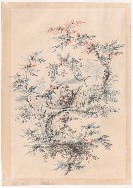 Jean Pillement created this "Fantastical Landscape with Exotic Plants and Three Figures" using watercolor and graphite, sometime in the 18th century. It’s a delicate, almost dreamlike scene, rendered with the precision of a botanical illustration. But look closer, and you realize this isn’t a study of nature at all. Pillement was known for his chinoiseries, fanciful European visions of China. The flowing lines and pastel palette mimic Chinese painting, but the scene itself is pure fantasy. The figures, seemingly at leisure in this exotic locale, invite us to imagine the social context in which this artwork existed. Consider the labor involved, not just in Pillement's meticulous brushwork, but in the global trade networks that fueled such fantasies. The paper itself, the pigments, the very idea of a tranquil, exotic East – all products of a complex, often exploitative system. This artwork blurs the line between observation and imagination, while also highlighting the cultural exchanges that shaped artistic creation.