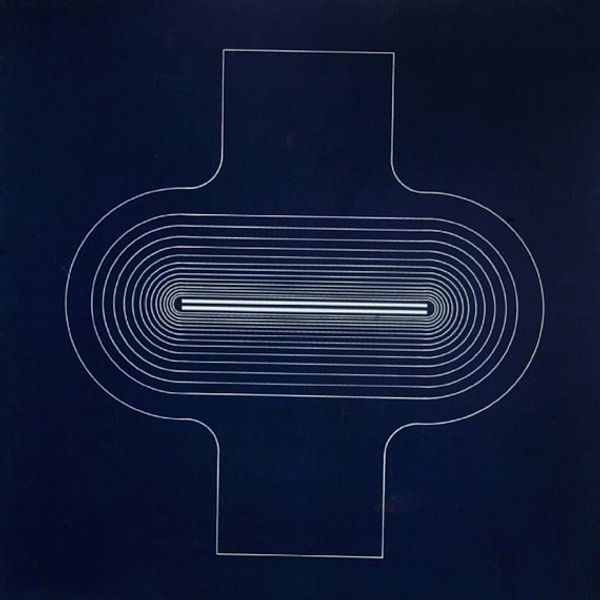 Tony DeLap's ‘Tenkai’ presents a captivating interplay of linear forms, set against a serene blue backdrop. The most striking feature is the pair of vertical, capsule-like shapes, nested within a circle, each delineated by a multitude of fine, arching lines. These forms, while seemingly abstract, echo motifs found across cultures. Think of the paired pillars in ancient temples, symbolizing balance and passage, or even the more modern interpretation of portals and pathways. The layered lines resonate with the concept of a labyrinth, or a complex journey, reflecting the human psyche's inherent quest for meaning. The arrangement invites us to delve deeper, stirring something primal within our collective memory. The circle, a timeless emblem of unity and infinity, contrasts with the parallel lines, creating a tension that is both visually and emotionally engaging. This echoes the eternal dance between the finite and the infinite. It is a testament to the enduring power of symbols, reappearing across different epochs, continually reshaped, and reinterpreted through the lens of human experience.