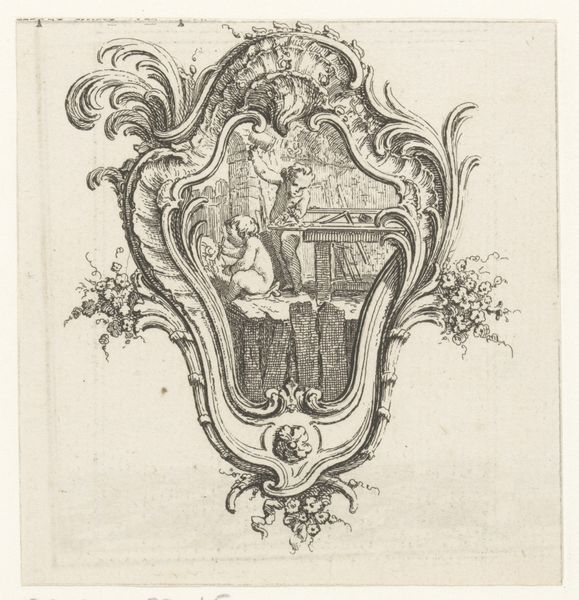 Josua van Solingen created this vignette of a library interior sometime in the late 17th or early 18th century, using etching techniques. At this time, literacy and access to books were largely confined to the upper classes, and libraries were spaces of privilege and scholarly pursuit. What do we make of the presentation of knowledge as being held and handled by a select few? Here we see two figures engaged in what appears to be an exchange of knowledge, set against a backdrop of towering bookshelves. The grand, ornate frame around the scene perhaps emphasizes the exclusivity and preciousness associated with learning and intellectual life during this period. Consider how our own access to information today contrasts with the scene depicted here, and what it means for society. How might such a scene resonate differently depending on one's own position within systems of power and knowledge?