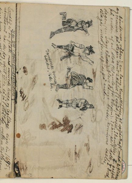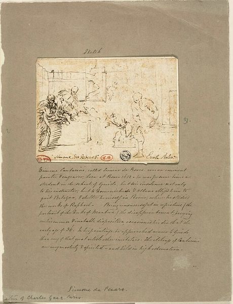 Curator: This evocative landscape drawing, "Heuvellandschap en twee patrijzen met jongen," or "Hill Landscape with Two Partridges and Chicks" by Johannes Tavenraat, dating from around 1833 to 1841, offers a quiet contemplation. It's rendered with pencil and ink on paper. What's your initial reaction? Editor: Well, initially it feels very intimate. I am immediately drawn to the rough texture of the paper, and how that intersects with the gestural lines, specifically around the depiction of the partridges. It reads almost like a personal, immediate document. Curator: Exactly. The medium, the accessibility and transportability of drawing materials like pencil and ink, suggests a direct relationship between the artist and the environment he seeks to capture. Think about the role of drawing within Romanticism—its connection to notions of self and of landscape as a space for individual experience and creation. Editor: It makes me consider how these images circulated. Was this drawing meant to be displayed as is? And how do questions of gender affect it. Was drawing deemed an activity of intellectual study or decorative leisure? Where in a domestic sphere would the drawing be viewed, by whom, and what purpose might it serve for them? The social currency, even if only domestic. Curator: Yes, the context of viewing definitely influences the experience, but what stands out to me are the artistic choices in creating the actual image—the weight of the lines, the negative space. Think about the physical action of the hand making the work. Note the quick, decisive marks creating a dynamic landscape—an almost immediate and direct physical link to the environment Tavenraat depicts. Editor: Right. So in essence we see layers upon layers of negotiation being expressed. We have questions around class and industry—around Tavenraat's economic conditions and relationship to both natural and synthetic sources, pencil and ink and the cost of paper—questions related to gender—its effects and place in Dutch society, for himself as a male and for the work he has left us, that ultimately affects the artwork itself. Curator: Absolutely. Understanding how the means and social nature of production shaped artistic outputs adds another layer to our understanding. Editor: Yes, it forces us to accept, and even champion, the limitations involved. That acceptance brings with it so much understanding. Curator: A beautiful demonstration of how thinking about materials and production impacts meaning and reception! Editor: Indeed, these kinds of objects become rich historical texts in this context.