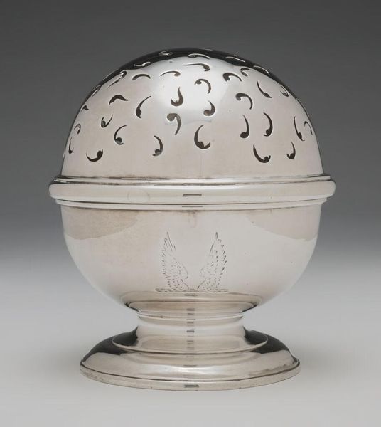 Curator: This unassuming piece, a ceramic and earthenware "Scottish Money Bank," made around 1780, appears quite humble. But I find it fascinating. Editor: I agree. At first glance, it seems like a simple, almost decorative object. It has such a swirling glaze. How should we interpret its function in the period? What kind of audience was it speaking to? Curator: Well, let’s consider the materials. Earthenware was quite common, accessible. The form mimics more luxurious items perhaps crafted in metal, yet this is decidedly a "common" material. The act of saving becomes material; delayed gratification tangible and present. We can ask: what labor went into shaping the clay, firing the kiln, applying the glaze? Was it piecework? Editor: It really underscores how even mundane objects embed socioeconomic realities. This little sphere embodies big ideas about labor and accessibility, not just saving. Curator: Exactly. And notice the subtle Neoclassical elements within its decorative art style: the perfect symmetry, the rows of small 'beads.' These details mimic luxurious designs but made affordably for a burgeoning middle class. A money bank makes clear reference to class stratification. Is this form purely decorative, or is it more practical and tied to production methods? Editor: That’s a perspective shift for me. It's like a commentary on the societal shifts, available to those excluded by older social structures. Curator: Precisely. Seeing it through a material lens really opens up the narratives embedded within what could easily be dismissed as a simple “money bank”. What did you think you'd see in this object, initially? Editor: At first, I was taken by its somewhat primitive charm. But now I see it reflecting complex economic and social systems. It gives a face to a demographic that wanted in on upward mobility. Curator: Right, it is more than the object’s simplistic form; we explored it using material history to better understand its purpose within labor dynamics.