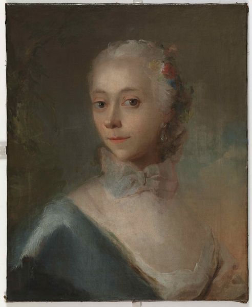 Editor: So, this is "Justina Johanna Ramskrammer, Wife of Isaac Parker" painted in 1734 by Philip van Dijk, using oil paint. I'm struck by the sort of staged naturalism – she's posed in a garden, but it all feels very deliberate. What do you see in this piece, from a historical perspective? Curator: It's a fascinating window into the social expectations of the time, wouldn't you agree? The portrait format itself was, of course, a symbol of status. Look at how she's positioned, seemingly at leisure in a garden. That’s not accidental; it’s conveying prosperity, access to leisure, and a cultivated sensibility. But the 'natural' setting is very controlled, very much a display. Editor: Definitely, it's all very carefully curated. How do you mean controlled display? Curator: Well, consider the context. This is the Dutch Golden Age's later phase, where ideas about class and societal roles were becoming more fixed and more visually asserted. It wasn’t simply enough to *be* wealthy; one had to perform wealth. And a portrait like this, displayed in the home, would have served as a constant reminder of the sitter's and her family's position. It's also a reflection on how gender and wealth intersect. Who gets memorialized and why? Are women given a different kind of attention compared to male portraits of that time? Editor: That's so true; it’s interesting to think about the performative aspect. The painting's not just about capturing her likeness, but about showing her social role. So, the art becomes a symbol of socio-economic factors of that moment? Curator: Precisely! Art here operates almost like propaganda, reinforcing particular ideals. The politics of imagery at work! It's a reminder that what we see in a museum is often the product of very specific historical and social forces. Editor: I never considered Baroque art in such socio-economic terms! Thank you! Curator: My pleasure. It's all about recognizing the conversations art engages with, and how museums like the Rijksmuseum become the spaces where those discussions continue.