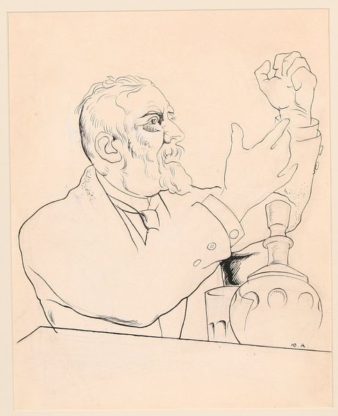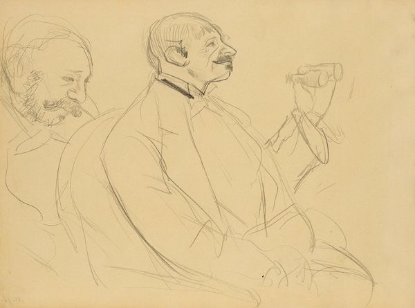 Editor: So here we have "alter Mann mit Kneifer", which translates to "Old Man with Pince-Nez", a pencil drawing by Max Beckmann. I find the raw, unfinished quality of the lines very striking, giving it a somewhat melancholic feel. What's your perspective on this piece? Curator: This pencil sketch is fascinating when considering Beckmann’s larger body of work. As a materialist, I’m interested in its creation. Why pencil? Why this paper? Was this a study for something larger? These are important questions. The “melancholy” you observe likely arises from the social and economic conditions of the Weimar Republic in which Beckmann was working. How did the scarcity of materials following the war impact his artistic choices and outputs? Editor: That’s a great point. The roughness could be less of an aesthetic choice and more a consequence of available materials and time constraints? Does the swiftness of the medium of pencil sketch provide immediacy compared to other means of portraiture? Curator: Exactly. This brings us closer to understanding the materiality of the piece. What kind of paper did he use? How would this cheap sketch paper be in reach of any artist in his social context, and how would using higher quality material shift its value, purpose, and the final aesthetic we see before us? Also, the hurried strokes are telling. Consider also that pencil as a medium allows for easy erasing, a sign of how many attempts made it into the finished form. Is it a disposable format for concept testing, or meant as a precious and final product? Editor: Interesting. So, seeing the materials themselves as an extension of the social and economic forces at play… It reframes the whole experience. Thanks for shedding light on this. Curator: Precisely! By examining the materials and their use, we move beyond simply appreciating the image, and start interrogating the broader context of its production.
