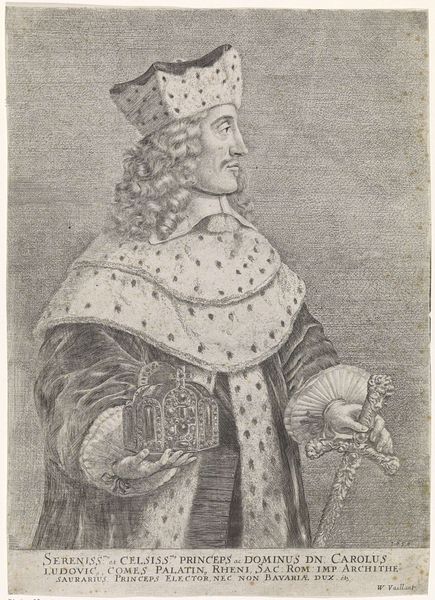 Cornelis Galle I made this portrait of King Ferdinand I of Portugal with engraving. Images of rulers, like this one, have always had a clear public role. They were designed to convey power and legitimacy. This print likely dates from the late 16th or early 17th century, a time when the Dutch Republic was establishing itself and defining its relationship to other European powers. Galle was working in Antwerp, a major center for printmaking and a city with close ties to both the Spanish crown and the Dutch rebels. The choice to depict a Portuguese king, and the way he is portrayed, would have had political implications. The symbols of monarchy such as the crown and scepter are obvious, but it's worth asking what this image was intended to communicate. To understand the image better we would need to do more research. Investigating the print's publishing history and circulation patterns can help us understand its role in shaping political opinion. The meaning of such an image is always contingent on its specific social and institutional context.