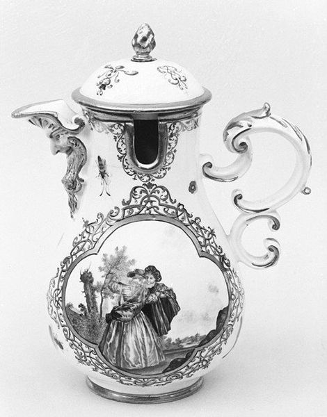 This porcelain vase with cover was crafted by the Chelsea Porcelain Manufactory during the 18th century, a time when Europe was consumed with replicating the prized porcelain of China. The detailed floral decorations surrounding a prominent heart motif speak to the period's Rococo aesthetics and the increasing importance of romantic love and sentimental expression. Yet, consider also the context: these delicate objects were luxury goods, accessible only to the aristocracy. They reflect the vast social disparities of the time, built on labor exploitation and colonial extraction. While it appears to celebrate beauty and romance, this vase also embodies the complex intersections of art, class, and power in the 1700s. It asks us to reflect on who gets to experience beauty, and at what cost?