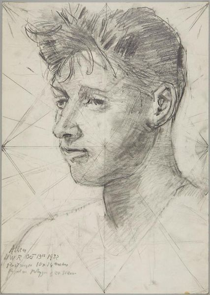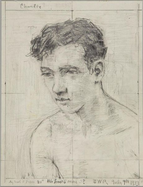 Curator: Looking at Denman Waldo Ross’s pencil drawing of "Charlie Parker," I’m struck by its quiet, almost contemplative mood. Editor: I see an exercise in portraiture, quite academic. Ross diagrams Parker's face using a grid, focusing on structure and proportion. The labor is visible. Curator: But think about the context. This is 1932. Race relations were fraught; access to art education was limited for Black Americans. Ross is documenting a young, Black man. Editor: Precisely, it shows a commitment to craft. Ross emphasizes the materials—paper, pencil—the very act of observation and recording. Curator: And Parker, at 18, is on the cusp of becoming a legend. This drawing captures a moment before fame, before the weight of expectation. It is so much more than just a study. Editor: Yes, and thinking about Ross’s social standing as a privileged white man, this work raises questions about patronage, representation, and the means of artistic production. Curator: Food for thought. It seems we're both seeing something significant here, from very different angles. Editor: Exactly. Let's see what our listeners discover.