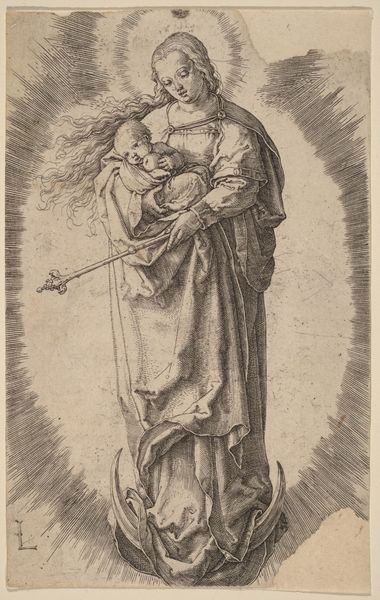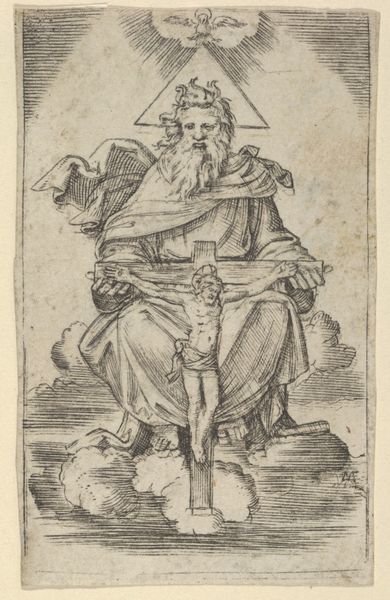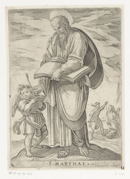 This drawing was made by Abraham van Diepenbeeck, likely in the 17th century, using brown ink and wash on paper. The fairly rapid and loose handling of the materials gives this work a sense of immediacy. But we might also consider the humbler aspects of its making. The artist has used common materials available in any studio. We see the fluid, almost casual application of the ink, giving shape to the bishop's robes, the angel’s wings, and the octagonal frame around them. Yet, the real subject here is not just religious, but also material: ordinary linen transformed into holy relics. The intimate act of caring for a baby, elevated to the realm of the divine. Through simple drawing techniques, Diepenbeeck reminds us of the labor involved in making art, and in making meaning. He invites us to look closely, past the ostensible subject, to the foundational act of caring for a new life. This piece underscores the connections between the earthly and the divine, the everyday and the eternal.