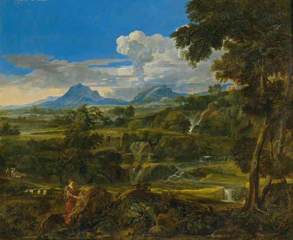 Nicolas Poussin painted this scene, *Landscape with Two Nymphs and a Snake*, in Rome, where he was working in the 1600s. It is an idealized vision of nature based on classical sources. In his day, there was heated debate in the French Royal Academy of Painting and Sculpture about what good painting should be. On one side, the ‘Poussinistes’ believed that drawing was the most important thing, and should be the foundation of all painting. They valued order, reason and clarity above all. On the other side, the ‘Rubenistes’ argued that colour was more important, and that painting should appeal to the senses and emotions. Poussin’s own art was a key point of reference for the Poussinistes. We might now wonder whether the landscape genre, especially one so stylized, could ever be politically progressive. To better understand paintings like this, we can consult the writings of art theorists in the period, as well as other visual depictions of the landscape through prints and drawings. This helps us to better understand the social and intellectual milieu in which the artist was working.