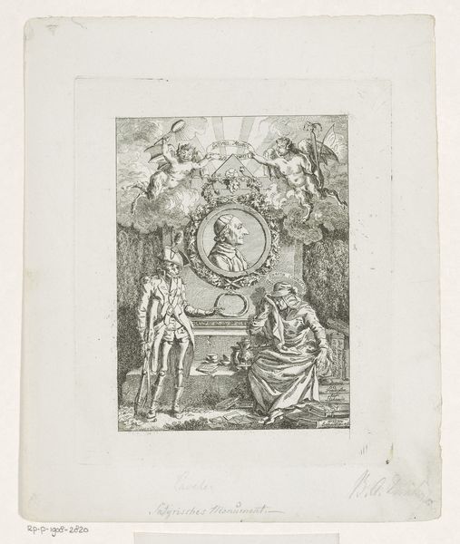 Jean Pesne created this engraving titled 'Hercules en Atlas' at an unknown date. Its circular composition immediately draws the eye, framing a scene of mythological exchange rendered in meticulous detail. The piece utilizes a limited tonal range, achieving depth and texture through carefully modulated lines. We see Atlas struggling under the weight of the globe, his body tense with exertion, while Hercules, in a moment of respite, is supported by a tree. The cloth draped beneath Hercules adds a textural element, contrasting with the smooth expanse of the globe above. The composition, viewed through the lens of structuralism, presents a clear binary: burden versus rest, constraint versus freedom. Yet, this opposition is not fixed; Hercules takes on Atlas's burden, destabilizing the initial power dynamic. This exchange can be interpreted through a semiotic lens, where each character functions as a signifier of responsibility and relief. Ultimately, the artwork invites contemplation on the shifting nature of roles and the burdens we carry, both individually and collectively.