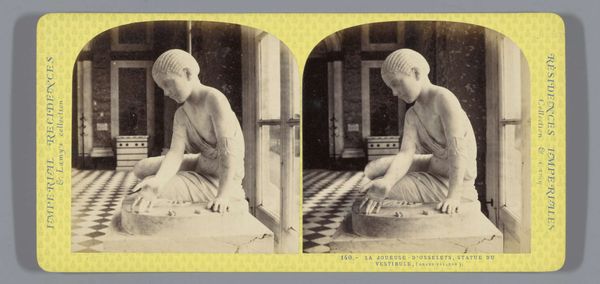 Editor: This intriguing black and white photograph by Bill Dane, titled "Untitled (I thought you might want some gallery pictures)," presents a fragmented bust. It's striking how the stark light emphasizes the textures. What formal qualities stand out to you? Curator: Observe how the strong contrast delineates form. The deep shadows sculpt the statue's features, creating a stark interplay with the sunlit wall behind. Note too how the horizontal planes of the ground create a sense of compressed space. Editor: The composition certainly draws the eye to the fragmented nature of the statue itself. Curator: Precisely. The fragmentation disrupts any clear narrative, instead prioritizing the visual impact of light, shadow, and texture. The composition is a carefully constructed arrangement of forms. Editor: I see what you mean. Thanks for pointing out the emphasis on the visual elements over a specific narrative. Curator: It's through this focus on form that we can begin to decipher the artist's intent.