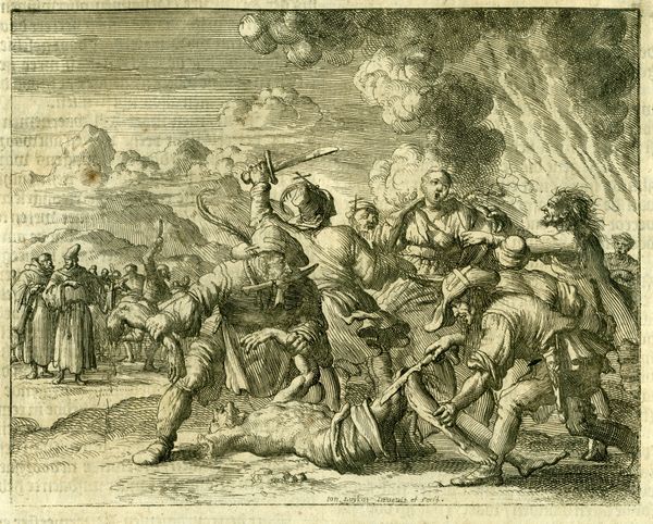 This print, Wreedheden in een dorp, was made in 1672 by an anonymous artist. It's an etching, made by incising lines into a metal plate, applying ink, and then running it through a press. The relatively low cost of this process meant that prints like these could circulate widely, shaping public opinion. Here, the stark contrast between light and shadow conveys the chaos and violence of the scene. Look closely, and you can see the fine lines that create texture and depth, the cross-hatching that builds up the darker areas. This wasn't just about artistic skill, though. It was also about labor. The etcher had to meticulously carve each line, and every impression required manual effort. Consider the social context. The print depicts atrocities during wartime. By making this horror reproducible, the printmaker allowed the image to act as propaganda, stirring up feelings, and shaping collective memory. It brings up important questions about the relationship between art, politics, and the mass production of images.