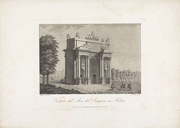 Jean-Baptiste Arnout rendered this view of the church Saint-Philippe-du-Roule in Paris with meticulous lines. The church's façade, reminiscent of classical temples, immediately strikes us with its row of Doric columns. This architectural choice carries a heavy historical weight, echoing the grandeur of ancient Greece and Rome, where temples were dedicated to deities and served as the focal points of civic life. The adoption of classical architectural elements in Christian churches signals a continuity of power and reverence, suggesting a divine presence dwelling within. We find similar columns in early Renaissance paintings, where they function as a backdrop to scenes of the Virgin Mary, or holy figures, lending an aura of timelessness. The columns and the temple-like architecture tap into our collective memory, evoking feelings of awe, order, and permanence. This psychological impact reinforces the church's role as a steadfast institution, bridging the earthly and the divine across centuries.