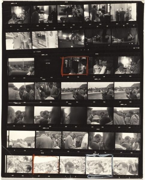 This is Robert Frank’s ‘New York City 4,’ a series of photographs printed on a sheet. The whole contact sheet is the artwork. It's like seeing the artist's mind at work, deciding what to show and what to leave out. The grainy blacks and whites speak to the physicality of the medium. The texture is raw, honest. Frank isn't trying to hide the process. You can almost smell the darkroom chemicals. I keep coming back to the middle row of images, those horses in the field. There's one frame where the horse is mid-leap, frozen in time. It's a fleeting moment made permanent, a reminder of how art can capture the ephemeral. Frank’s images have a similar feel to the early work of Garry Winogrand, who also liked to work in series, each photographer is chasing an ideal of authenticity in the urban landscape. Ultimately, this sheet is a conversation about what it means to see and be seen.
