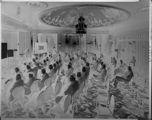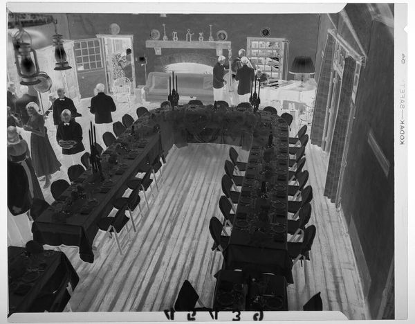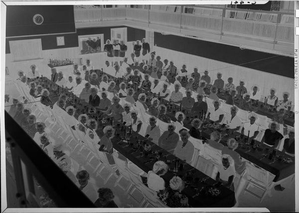 Robert Burian captured this black and white photograph of a large group of women at banquet tables. Without a date, the image nevertheless speaks volumes about social life in the mid-20th century. Here, the photograph's composition emphasizes both uniformity and hierarchy. Rows upon rows of formally dressed women are seated at long tables, their identical tableware creating a pattern of near-regimentation. A stage at the back displays a head table, visibly marking social ranks. What event brought these women together? Was this a religious gathering? A charitable organization? Or perhaps a women’s auxiliary group, common in an era when women's roles were often relegated to supporting male endeavors. The photograph offers us a glimpse into the collective social lives of women during that time. Analyzing photographs like this involves looking at the details of dress, decor, and setting, and researching local historical records and organizational archives. It allows us to consider the social structures that shaped everyday experiences. What this image holds for us is a reflection of our shared history.