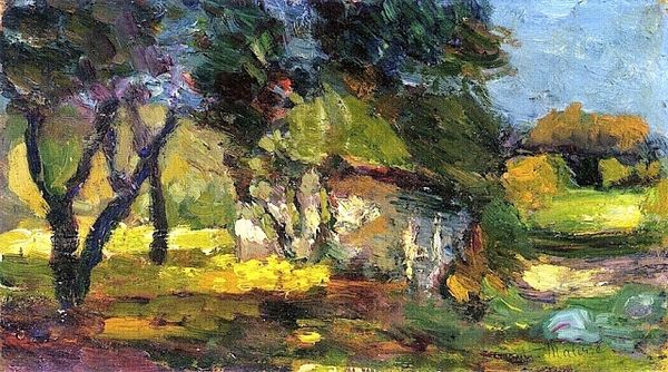 Editor: So here we have Camille Pissarro's "Landscape," likely done in pastel, judging by the soft texture. It gives me a kind of nostalgic, rural feeling. The color palette feels very grounded. What stands out to you most when you look at this work? Curator: I'm struck by the artist's embrace of humble materials to depict a rural scene, one assumes close to Pissarro's place of production. The apparent casualness in the application of the pastel actually masks a deep engagement with the labor required to extract, refine, and then apply these pigments. What does this suggest about the social status of landscape painting at the time? Editor: That it was perhaps considered a less prestigious genre, making it acceptable to experiment with more accessible or “lower” materials? Like, was he deliberately blurring the line between fine art and everyday craft? Curator: Precisely. Consider the implications of choosing pastel, a medium often associated with sketching or preliminary work, for a finished "Landscape." It’s less about the subject itself and more about challenging the conventional hierarchy of materials and techniques in the art world. Editor: That's a really interesting take! I always thought Impressionism was just about capturing light. Curator: Light is definitely part of the equation, but thinking about the social and economic context of production opens up a whole new layer of understanding. Notice how Pissarro doesn’t try to hide the materiality of the pastel strokes. He embraces the process. Editor: So by showing the "how" of the artwork, he is also drawing attention to labor? I'll need to rethink impressionism now! Thanks! Curator: My pleasure. Seeing art through the lens of production makes even familiar landscapes speak volumes about their own creation.