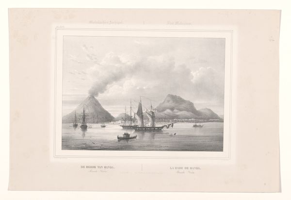 This print, "View of the Coast of Greater Aceh," was created by C.A. Whitten. Its subdued palette and meticulous detail come from a combination of printing and hand-coloring. Consider the paper itself, likely mass-produced, and the printing process, allowing for widespread distribution. This wasn't a unique, handcrafted object in the traditional sense. Instead, it was a product of its time, reflecting the rise of industrialization and the increasing availability of visual information. The subtle hand-coloring adds a layer of value, but doesn't disguise the print's origins in reproduction. The image depicts the Dutch fleet during the First Aceh Expedition, a military campaign to colonize the region. The very act of creating and disseminating this image was part of the colonial project, a way to document and celebrate Dutch power. Looking closely at the print, we can see how its materials and methods are intertwined with social and political forces. It is a reminder that art is never truly separate from the world in which it is made.